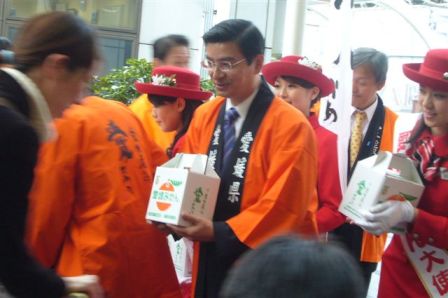 午後、愛媛みかんを全国にPRする活動として加戸愛媛県知事を中心にトップセールスの行事に参加する。