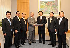 公明党チリ地震津波災害対策本部の井上義久本部長(幹事長)らは10日、首相官邸で平野博文官房長官と会談し、鳩山由紀夫首相にあてた同地震の津波被害に対する要望書を手渡した。