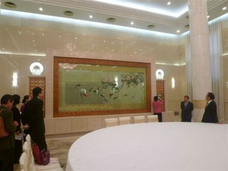 毛沢東の生まれた湖南省の部屋や鄧小平の出身地の四川省の部屋を見学。こうした部屋が省の数34の部屋があるとの事。全国から集まる全人代の委員が使用するという。