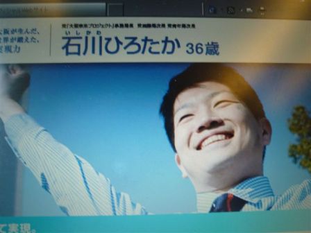 本日は1日中、石川ひろたか(大阪選挙区)支援で大阪中を飛び回わる。石川さんは同じ故郷愛媛県と大変縁が深い。お父さんは愛媛県西条市・お母さんは愛媛県松山市出身。また妻と同じ高校卒業と身内のような関係。