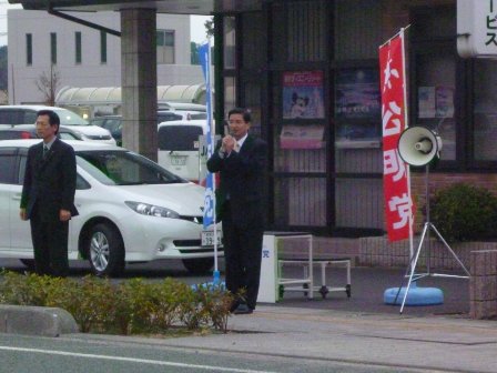 その後大田市で石田大田市議とあいさつ回りの後、夕方パル前で街頭演説。