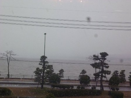 早朝の便で島根出雲縁結び空港へ。雪の影響で、空港の上空で1時間の旋回の後、無事着陸。