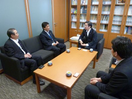 香川県宇多津町 谷川町長・青木議長(公明党町議)等が事務所に来訪。宇多津町の町政の状況などお聞きする。