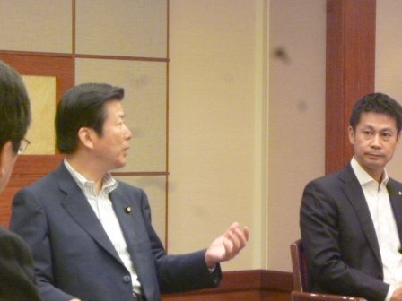 山口代表と湯崎知事の忌憚ない闊達な発言。示唆に富む内容で大変有意義な懇談会となった。