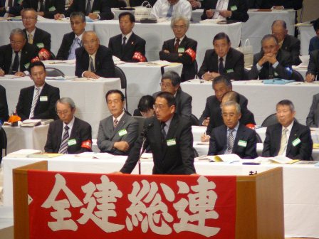 まず全建総連の皆様が東日本大震災において、懸命な救援活動や仮設住宅などの復旧支援に取り組まれた事への感謝と御礼をのべさせていただく。