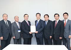 公明党の山口那津男代表らは15日、衆院第2議員会館で飯泉嘉門徳島県知事から「『安全・安心な国づくり』に向けた重点戦略」に関して要望を受けた。