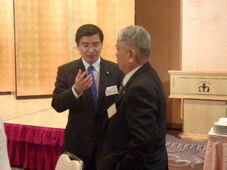 立食でなく席に座っての高知方式の年賀会。日頃お会いできない各首長や各種団体、地場企業の方々と親しく懇談。