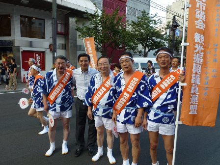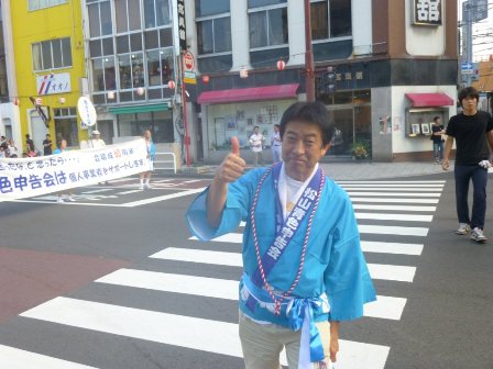 青色申告会には塩崎衆議院議員(自民党)が艶やかな祭り姿。