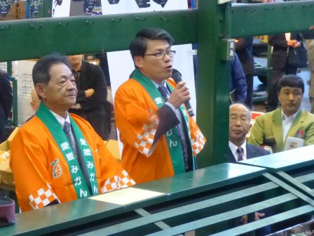 ふるさと愛媛温州みかんの初セリ・トップセールスに参加。2007年より毎年参加している。