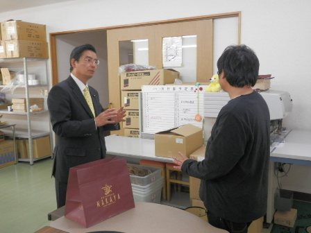 社会福祉法人ウルカ福祉会を訪問。野川理事長(職務代表者)から障害者就労継続B型や児童デイサービスの現状や要望を伺う。 就労B型の利用者は約20名で袋作業や軽作業を中心に賃金向上に努力されている。発注先の減少や賃金の高い仕事への設備投資などで支援策を要望される。障害者優先調達推進法の成立による環境改善へ、さらに努力してまいりたい。 共有: Facebook で共有するにはクリックしてください (新しいウィンドウで開きます) Facebook クリックして X で共有 (新しいウィンドウで開きます) X 関連
