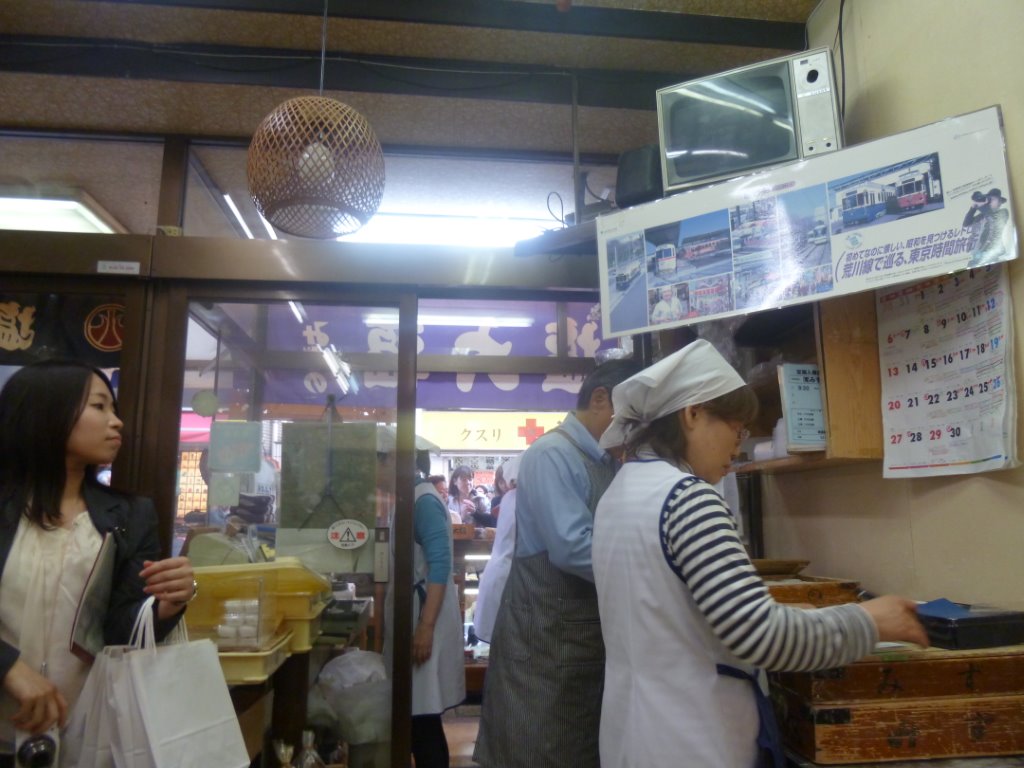 巣鴨地蔵通り商店街振興組合の木崎理事長から概要の説明の後、新藤副理事長(金太郎飴のお店)の案内で、商店街のお店を廻りました。