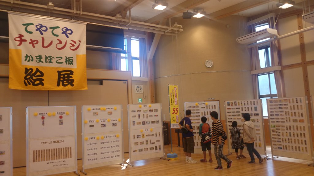 交流館では「てやてやチャレンジかまぼこ板絵展」が展示されていました。八幡浜の名産かまぼこの板を活用した絵画展。