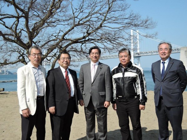 坂出市の前川昌也市議会議長と公明党の若杉輝久・松成国宏両市議と丸亀市の内田俊英市議と記念の写真を撮りました。坂出親子おてつ隊のお抹とお菓子のお接待もあります。美味しかったです。沙弥島にも是非お越しください。