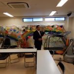 理事の那部智史氏・山田哲也氏の案内で見学。40人の方々のアート作品が展示されています。障がいのある方々の情熱豊かな感性に驚きです。