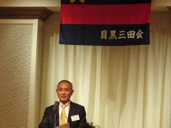 目黒三田会の安川会長の挨拶、慶應義塾から北村塾員センター課長から近況の報告。