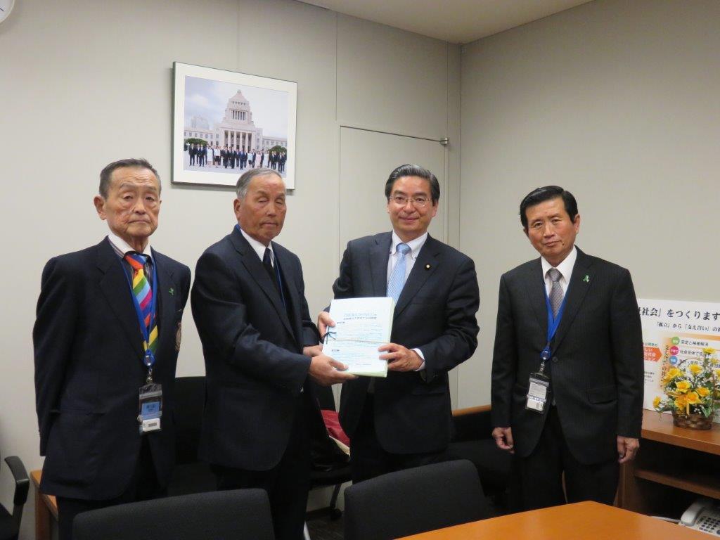 愛媛県腎臓病患者連絡協議会(愛腎会)の山田満春会長・阿倍えいじ執行部委員、香川県腎臓病協議会の秋山祐一会長・南原義秋副会長・中原薫幹事が、16日、其々事務所に来訪されました。「腎疾患総合対策」の早期確立を要望する請願書を持参され、請願内容を伺いました。