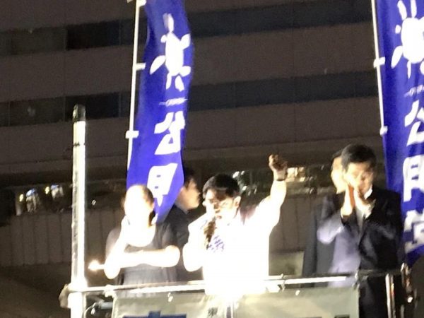 都議選最終日、「斉藤やすひろ」最後の街頭演説会。中目黒駅前にて石井国交大臣の応援で行いました。(1日)