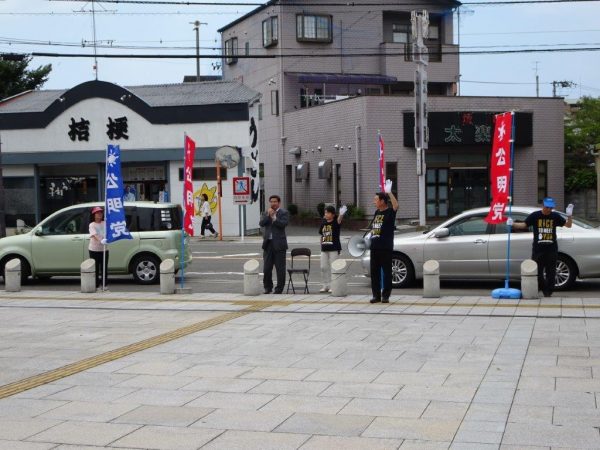 四国中央市から西条市に移動。13日午後から、西条市役所 総合文化会館前にて、公明党愛媛県東予西総支部の終戦記念街頭演説を行いました。