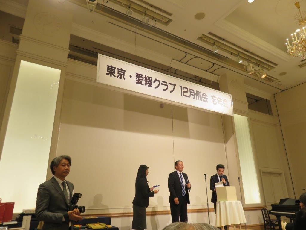 「平成29年東京・愛媛クラブ12月例会・忘年会」が6日夜、都内にて開催されました。 愛媛出身の首都圏に住む経済界の方々が集われました。例会では、代表幹事の井上晴孝氏の開会挨拶の後、(株)愛媛新聞社 代表取締役社長 土居英雄氏の乾杯。井上代表幹事は同じ八幡浜高校の先輩です。 故郷の経済界の皆様と交流を深める事となりました。ありがとうございました。 井上代表幹事東京・愛媛クラブ12月例会・忘年会福引演奏 共有: Facebook で共有するにはクリックしてください (新しいウィンドウで開きます) Facebook クリックして X で共有 (新しいウィンドウで開きます) X 関連