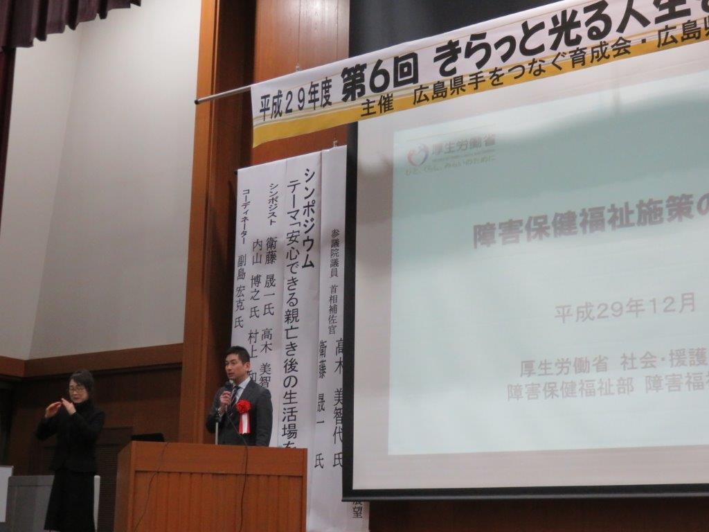 広島県知的障害者福祉協会・手をつなぐ育成会が主催で、「自分の住みたいところで、きらっと光る人生を送る」がテーマです。家族・親の会・施設関係者・行政・雇用関係者・民生委員など会場一杯の皆様が参加。