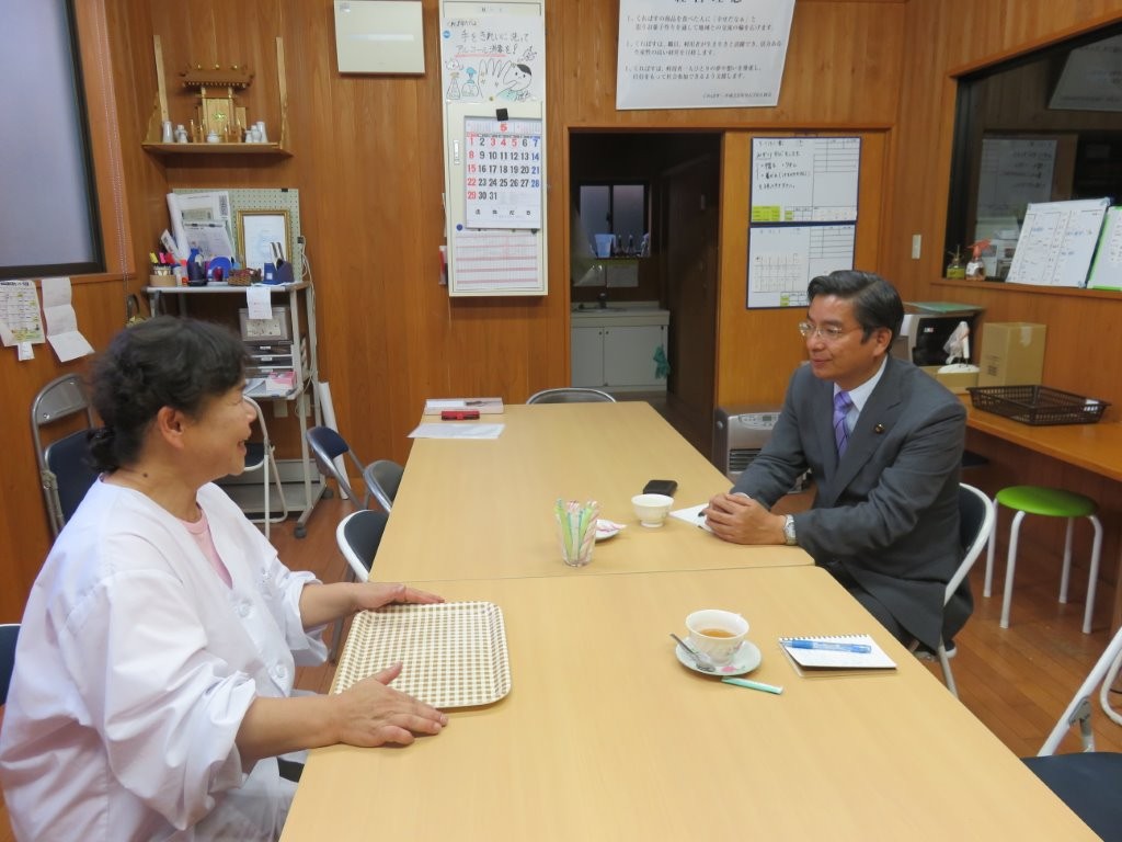 障がい者就労・NPO法人「お菓子屋くれぱす」岩佐理事長と懇談(鳥取県境港市)