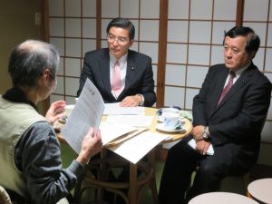 八王子市内の東海大学八王子病院の視察を終え、新横浜駅から新幹線に乗り福山駅へ。(2日)夜の遅い時間となりましたが、福山市内にて化学物質過敏症で苦しまれている方と会い、切実な悩みと要望を伺いました。地元公明党の尾熊良一県議も同席。