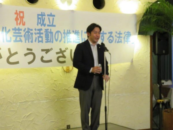 6月7日に成立した「障害者による文化芸術活動の推進に関する法律」の成立報告会・懇親会が20日夜、行われました。