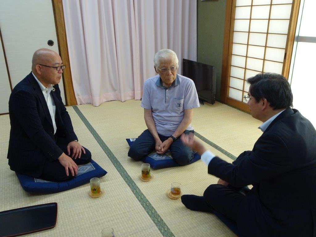 栗林校区連合自治会の松下保会長(栗林校区コミュニティ協議会会長)とは栗林コミュニティセンターで懇談。
