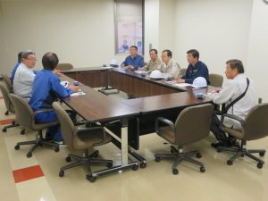 呉市の庁舎にて新原市長から大雨の被害状況と要望を伺いました。
