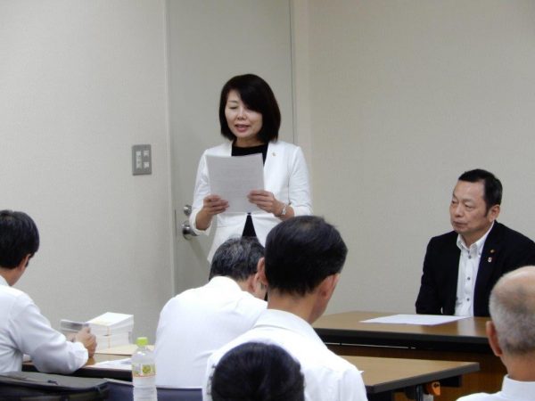 木村誉幹事長(県議)今後の活動について、笹岡博之県代表の挨拶。