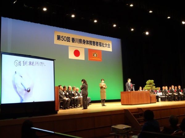 11日午前、第50回香川県身体障害者福祉大会が丸亀市にて開催され、香川県内身体障がい者5万人の代表400名が参加。 和田敏夫副会長の開会のことば、岡村隆次会長の開会の挨拶。障がい者福祉に貢献のあった方々の表彰の後、来賓として挨拶。 日頃の感謝と共に、臨時国会から実現した国会中継の字幕化、改正バリアフリー法・障害者文化芸術活動推進法の成立。 今後、読書バリアフリー法・情報コミュニケーション法の整備など進めていく事をお話ししました。 共生社会の実現に向け、しっかり取組んでまいります。 岡村会長 和田副会長 大勢の参加者 手話・要約筆記 挨拶1 香川県身体障害者福祉大会 表彰 共有: Facebook で共有するにはクリックしてください (新しいウィンドウで開きます) Facebook クリックして X で共有 (新しいウィンドウで開きます) X 関連