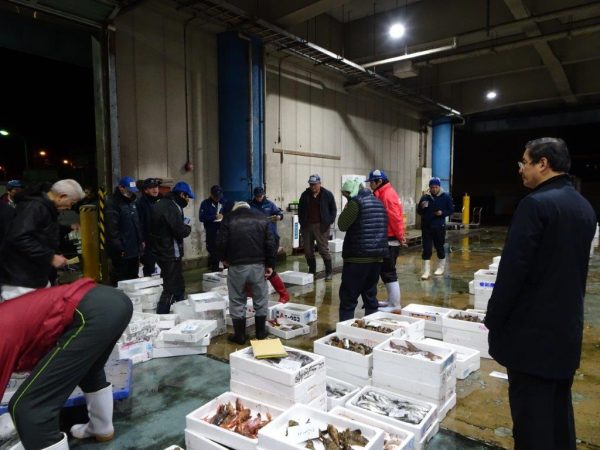 5時30分からの水産部門の初セリも見学。香川県魚市場(株)山本啓一会長、(株)高松東魚市場 平山佑助社長から水産業の現状など伺いました。オリーブぶりや鯛など活気あるセリの声。威勢がいいです。今後のさらなる発展を応援してまいります。