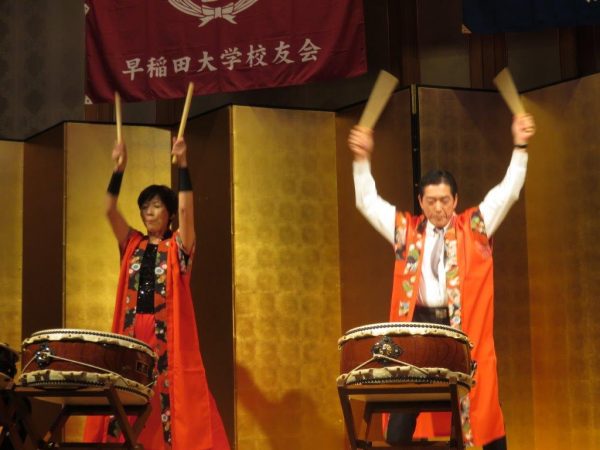 余興に太鼓演奏。子ども達の可愛いい撥さばき。慶應同窓の玉井さん・中村知事の太鼓も見事です。
