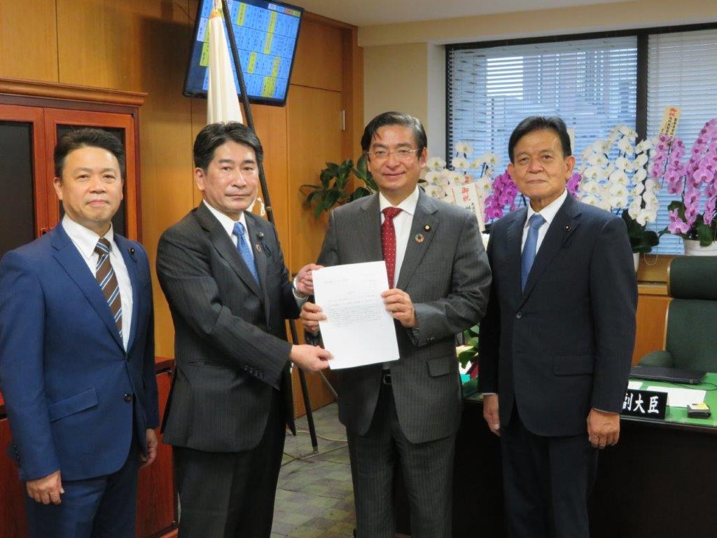 22日夕方、公明党奈良県議団の3名(大国正博県代表・山中益敏県幹事長・亀甲義明県議)が副大臣室を訪問。