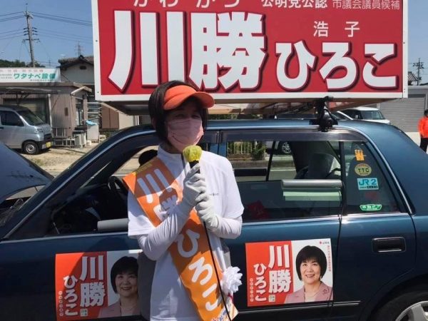 公明党から4期目「河本ひろし」候補と新人「川勝ひろこ」候補が挑戦。、