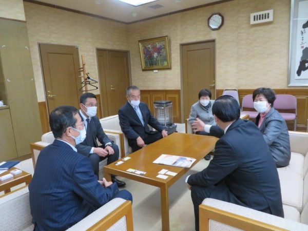 25日鳥取県岩美町庁舎を訪問。地元森田洋子町議、鳥取市の平野真理子市議・前田伸一市議が同行。