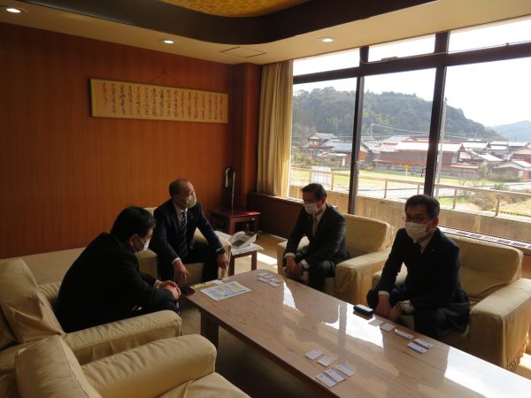 27日鳥取県南部町役場へ、平林晃衆院議員、安田篤米子市議、前原茂米子市議と訪問。