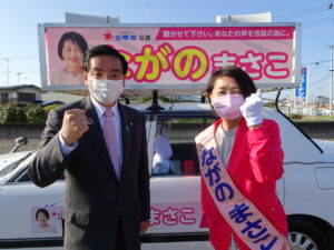 公明党から3期目挑戦の「佐々木きみえ」候補と2期目挑戦の「松浦まこと」候補が出馬。