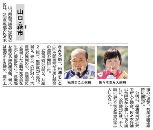 4月17日告示24日投票の山口県萩市議選。終盤戦です。