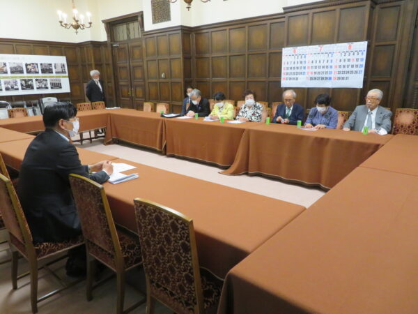 参議院議員のOBの方々が加盟する一般社団法人 参議院協会の宮崎秀樹会長らが公明党参議院控室に来訪。 「女性議員を大幅に増やす提案の要望」の内容です。公明党のOB議員である澤雄二さんも同行されました。 【参議院協会】 前参議院議員が中心となり、議会制度、特に参議院制度に関する調査・研究を行い、広く国民に議会制民主主義思想を啓蒙普及し、議会制民主主義の発展に寄与するとともに、会員の親睦及び福祉の増進を図ることを目的とする。 参議院協会の皆様と 挨拶 宮崎会長からの提言 澤雄二先輩 意見交換 共有: Facebook で共有するにはクリックしてください (新しいウィンドウで開きます) Facebook クリックして X で共有 (新しいウィンドウで開きます) X 関連