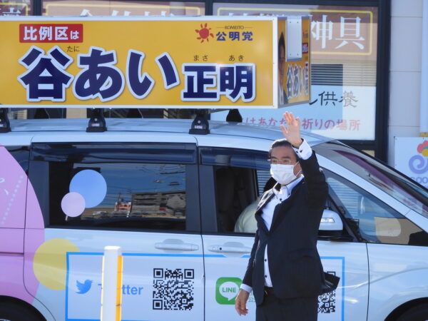 参院選7日目。28日は、愛媛県松山市内からのスタートです。 「谷あい正明」街宣カーのメンバー≪木村県議、3人の松山市議(大塚・長野・佐々木)≫と共に朝8時からの朝立ちに参加。 市内の皆様に、比例区は「谷あい正明」をお訴えしました。 本日は松山市内での朝礼、昼礼、午後は今治市に移動して、終日廻ります。 朝立ち 朝立ち2 皆様と 木村県議 3人の市議 共有: Facebook で共有するにはクリックしてください (新しいウィンドウで開きます) Facebook クリックして X で共有 (新しいウィンドウで開きます) X 関連