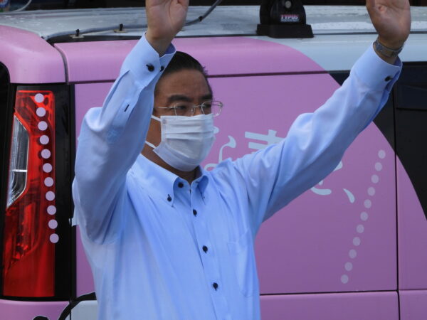 選挙戦最終日。比例区「谷あい正明」街宣カーと共に、松山市内からスタート。