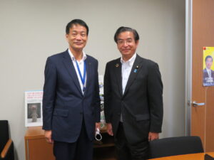 6日夕方、鳴門市役所を古川広志・梶原一哉両県議と訪問。泉理彦鳴門市長らと「新型コロナ対策、物価高騰対策、新庁舎建設など」懇談。