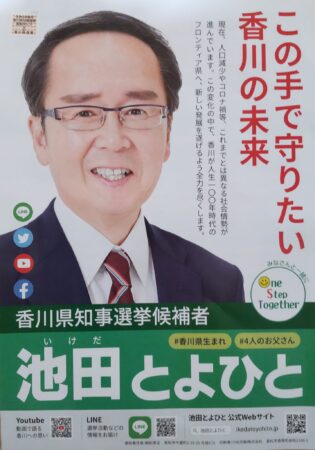 香川県民の安全な暮らしを守り、香川県の経済を発展させる「池田とよひと」候補に是非清き一票をお願いします。全力で応援します。