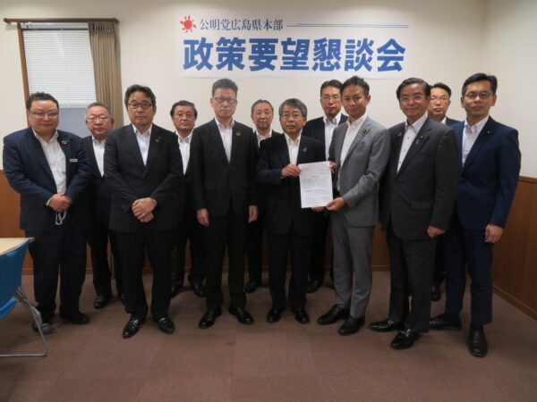 5日広島市内にて2022年・政策要望懇談会を開催。公明党から谷あい正明中国方面本部長(参院議員)、山本ひろし(参院議員)、平林晃衆院議員、地元2人の県議(田川寿一県代表・尾熊良一)、