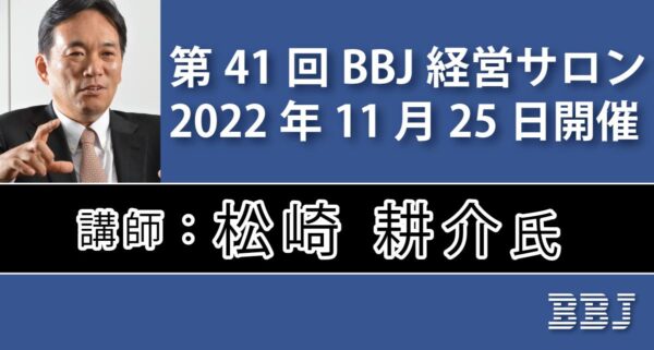 「第41回BBJ経営サロン」が25日18時30分~19時35分にて、オンライン&ハイブリット開催で実施され、私は東京駅から新山口駅に向かう新幹線のぞみ号の中で参加し、お聞きしました。
