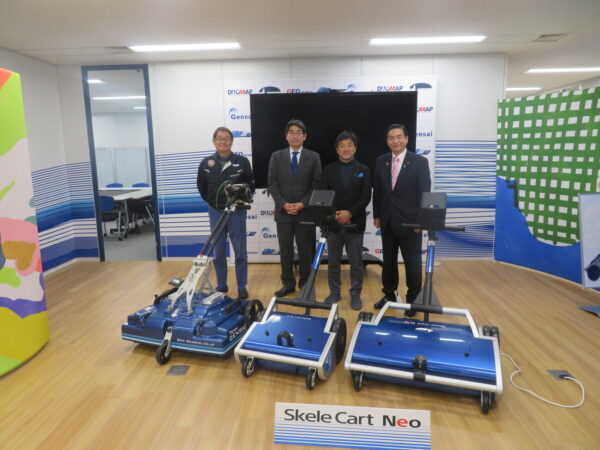 トラック型の「スケルカ―」や手で押す「スケルカ―ト」。スケルカートを運転しましたが大変軽くびっくりしました。スケルカ―やスケルカートで集めたデータを「見える化」する技術「AR(拡張現実)」はめがね型端末で体験出来ます。