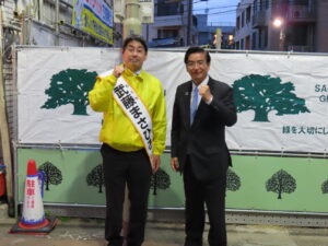 2期目挑戦「かわうち優子」候補の応援へ。