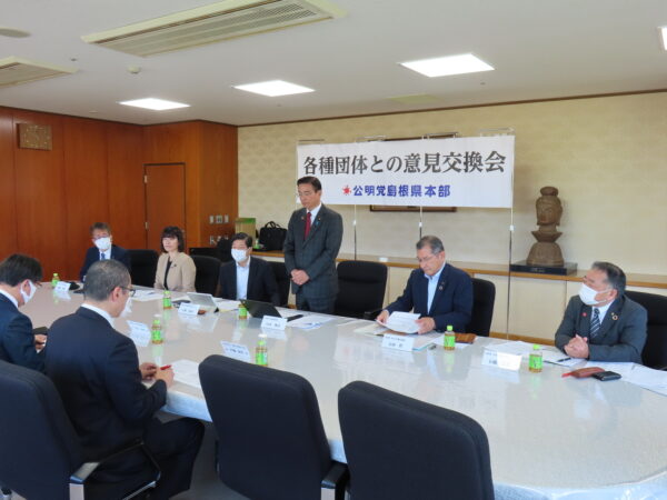 28日、島根県松江市内にて、終日「公明党島根県政策要望懇談会」(各種団体と公明党議員の意見交換会)を開催。