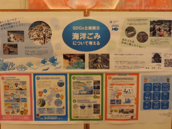 会場内企画では、海ゴミ清掃プリジェクトパネル展示(一般社団法人 EC[オーシャンズ 岩田功二代表理事)やみかんジュース蛇口コーナーも。